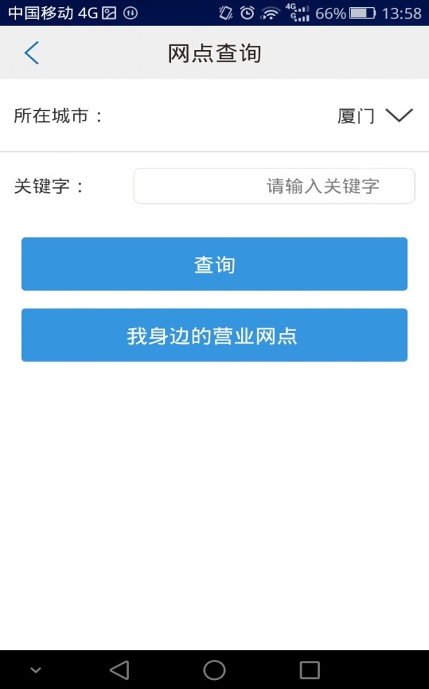 1、用户通过点击网点查询,进入网点、自助设备菜单查询页面