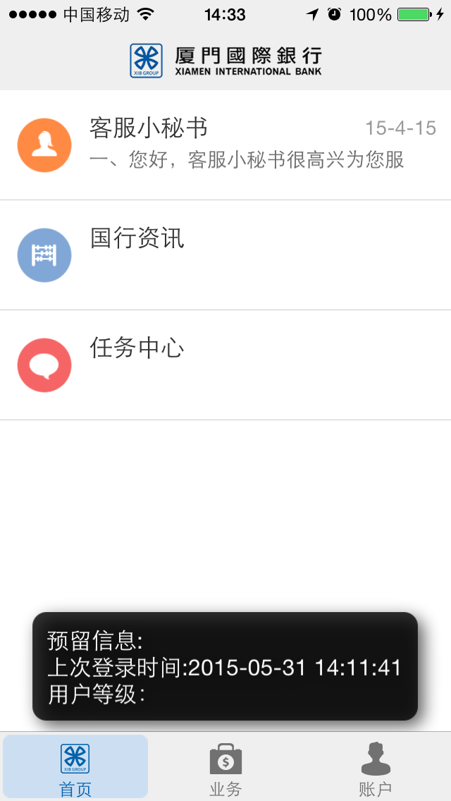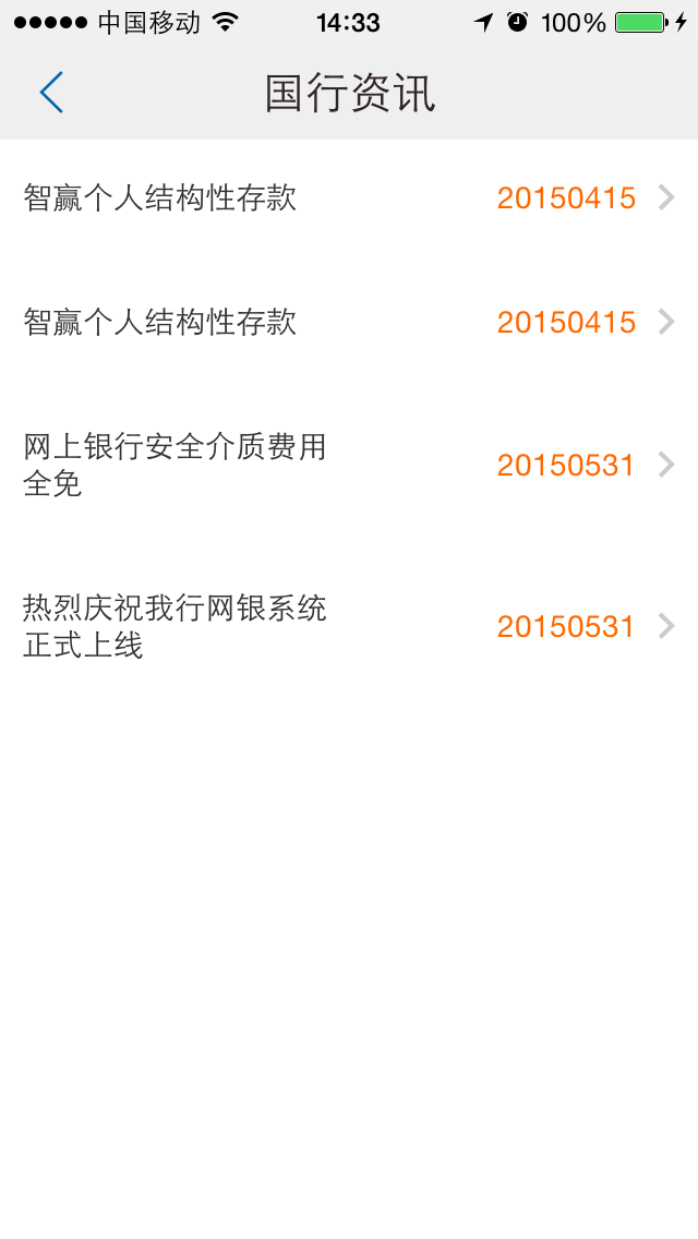 国行资讯是我行企业手机银行的信息推送界面。客户可点击国行动态,查看我行发布的最新公告及优惠讯息。