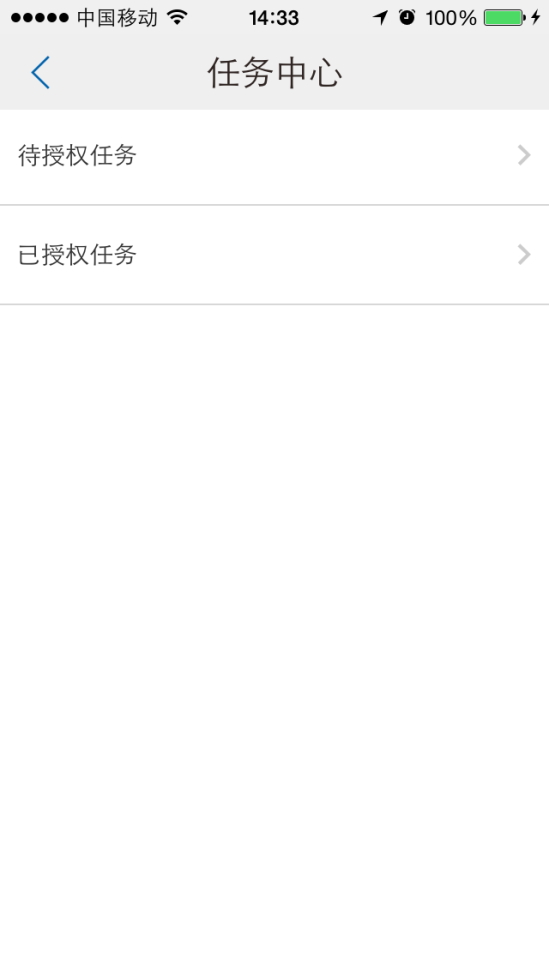 用户进入任务中心,界面显示待授权任务和已授权任务。点击进入可以查看具体笔数。