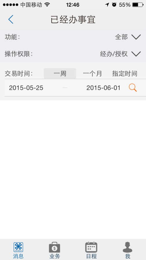 点击已授权任务,输入各项要素,功能、操作权限、交易时间,点击查询,可以进入查看授权任务详情,展示任务标号、功能名称、操作员、申请时间、交易摘要、任务状态。