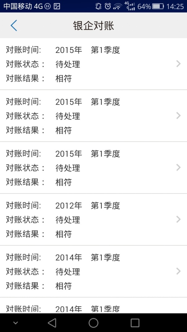 用户进入银企对账点击对账结果查询,系统显示所有对账结果列表。