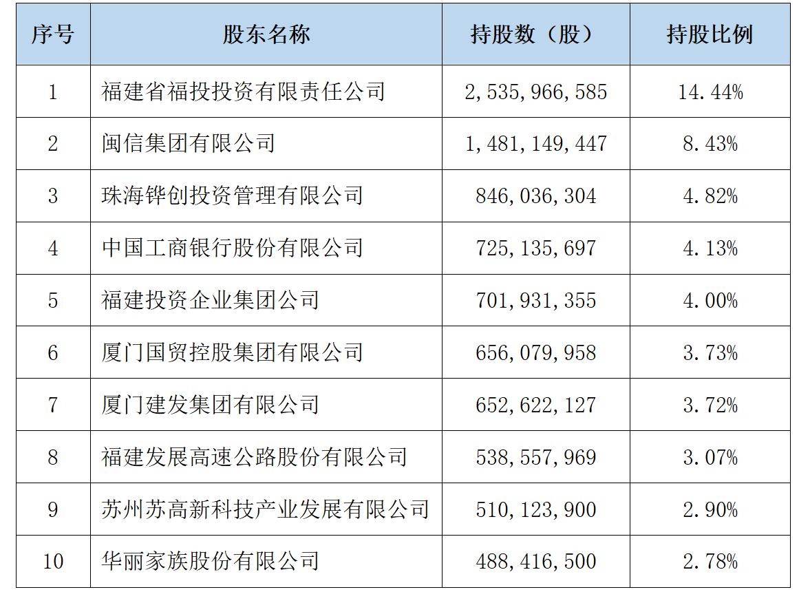 厦门国际银行股份有限公司前十大股东持股情况表(截至2026年3月27日)