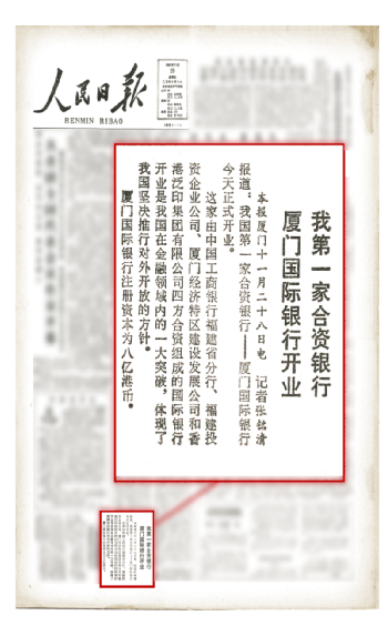 1985年11月28日,作为新中国第一家中外合资银行,厦门国际银行在改革开放的春风中应运而生。厦门国际银行的诞生是中国金融史上的一次重大创新,也是中国早期金融改革开放的生动实践。