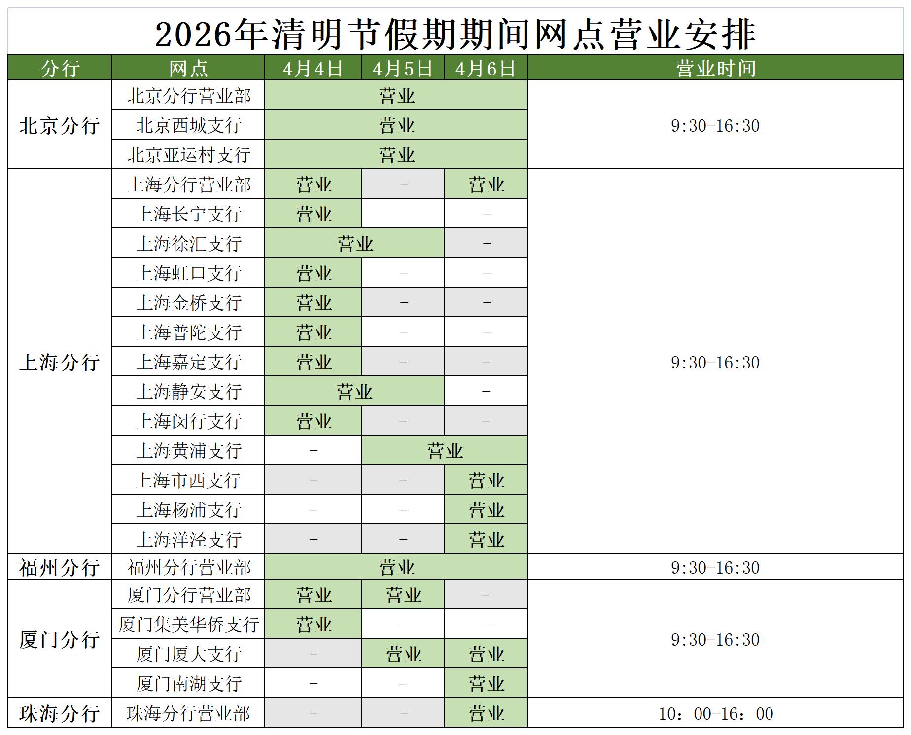 您好!2026年五一劳动节假期即将来临,为方便您办理个人金融业务,现将假期期间我行网点个人业务对外营业时间安排公告如下,敬请留意。