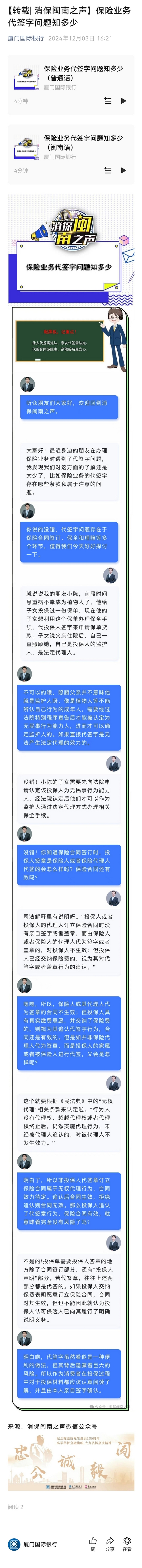 【转载丨消保闽南之声】保险业务代签字问题知多少
