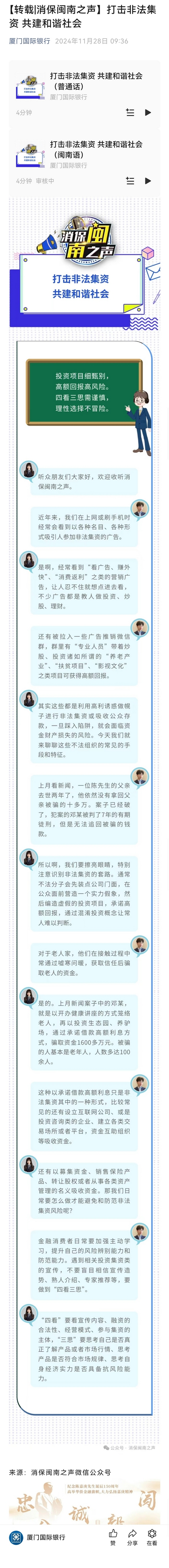 【转载丨消保闽南之声】打击非法集资 共建和谐社会