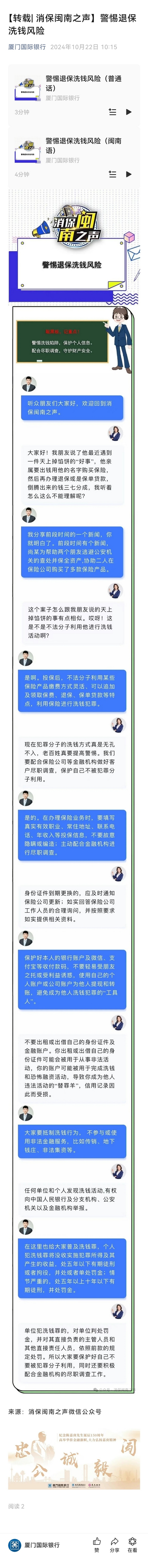 【转载丨消保闽南之声】警惕退保洗钱风险